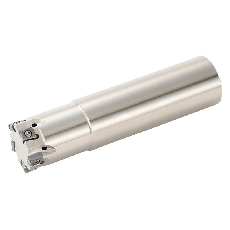 Fraise tangentielle à 90° avec plaquettes à 4 arêtes. Permet de nombreuses opérations d'usinage. Usinage, stable et de haute qualité avec une durée de vie accrue de l'outil.