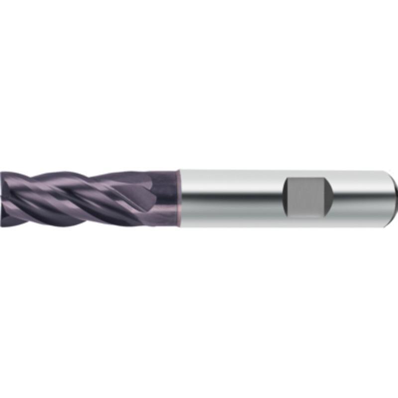 Fraises deux tailles (4 dents) / e8 / DIN 6527L / carbure monobloc / FIRE / Type: N / Sens de coupe: à droite / Version: fraise haute performance avec des angles d´hélices variables, dégagement et coupe au centre.