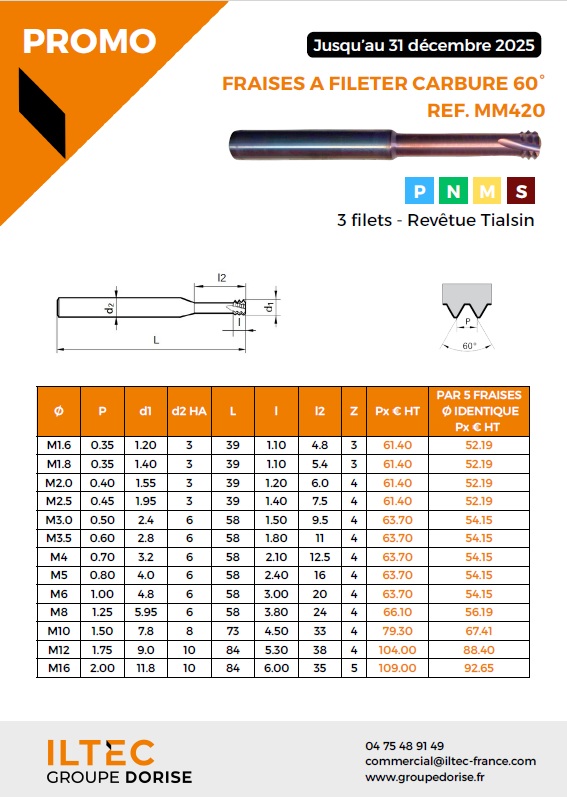 Fraises à fileter et fraises à chanfreiner carbure