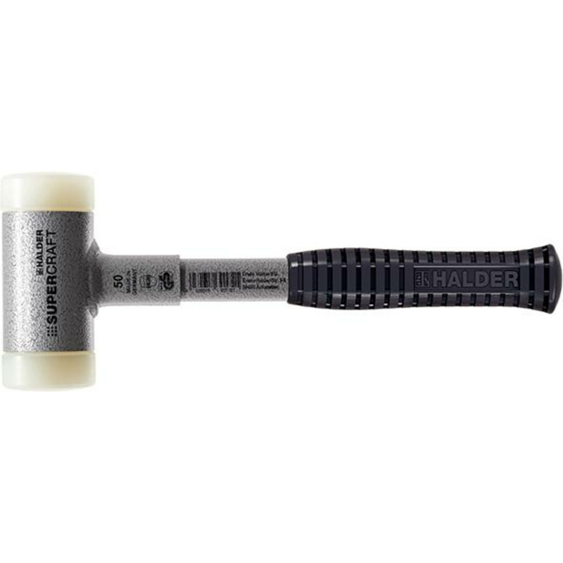 Modèle : corps en acier, sans rebond grâce au remplissage à billes. Les embouts en nylon sans cadmium sont échangeables. Avec manche en tube d’acier et poignée en caoutchouc de forme ergonomique.