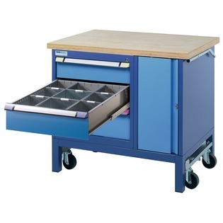 Description : Hauteur 870/890 x largeur 1000 x profondeur 700 mm Support d'établi en tubes carrés de 50/50 mm Avec unité mobile escamotable, roulett...