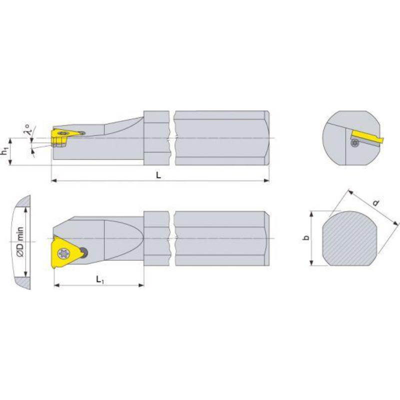 Modèle : porte-outils à fileter, avec assise et angle d'inclinaison 1,5°, serrage par vis. Livraison sans plaquettes de coupe, sans tournevis.