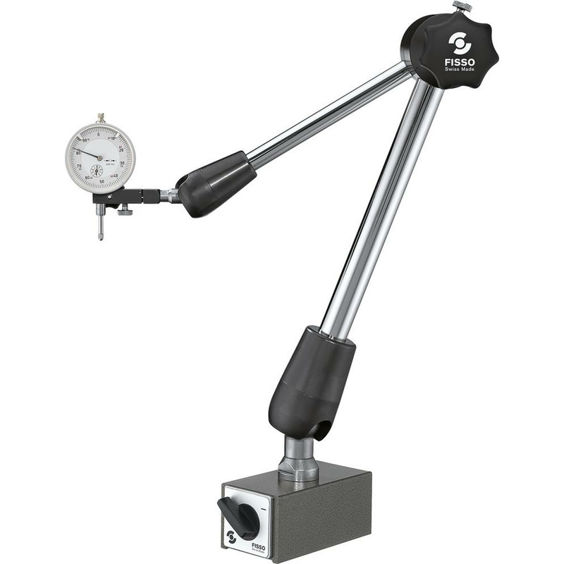 Modèle : base avec aimant pouvant être activé et désactivé, à semelle prismatique. Serrage mécanique central pour un positionnement rapide et un réglage précis. Emmanchement de jauge Ø 8 mm et emmanchement à queue d'aronde. Livraison dans un emballage de transport.
